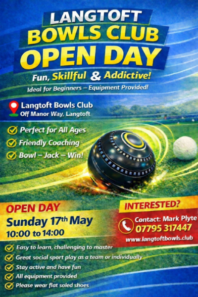 See here for the Notice of Meeting, which gives details of the forthcoming Langtoft Bowls Club AGM scheduled for Saturday 24th January 2026 at 2:00 p.m in Langtoft Village Hall. Proposals for discussion at the meeting, or nominations for any of the vacant positions on the Committee should be submitted to the club Secretary by any of the means in the recently sent email.