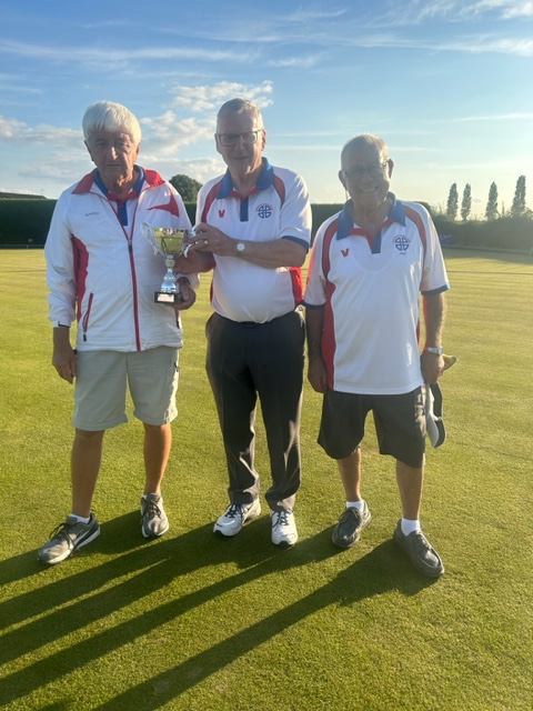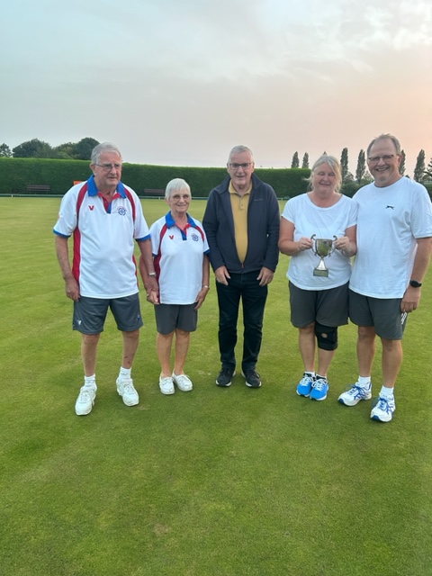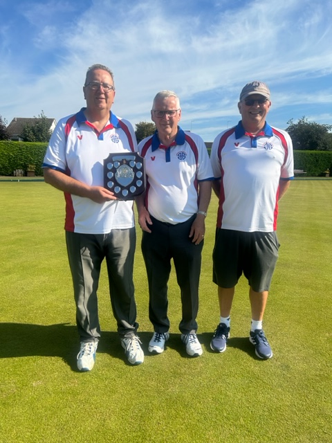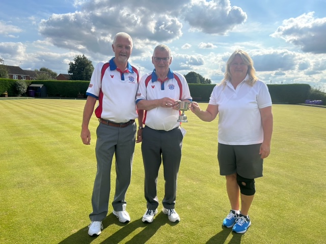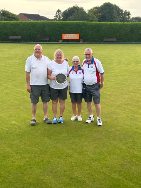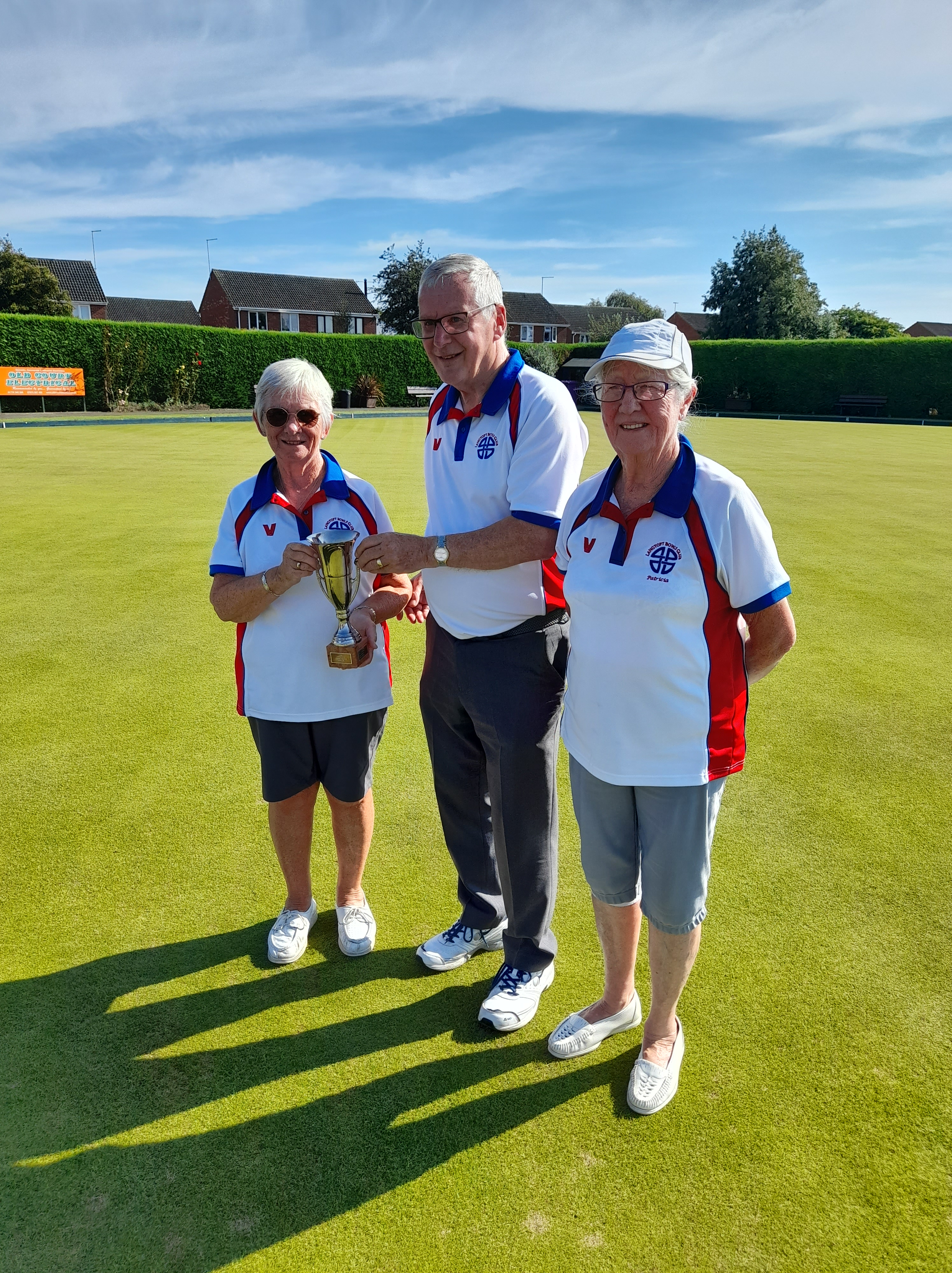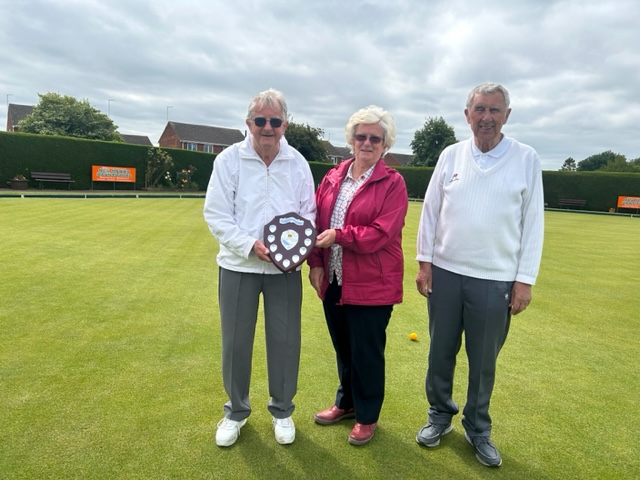 The Rose Bowl and Plate competition held on Sunday 10th September was played in glorious weather during the morning but was unfortunately interrupted by thundery showers in the afternoon. Hence the day was prolonged by probably an hour and a half longer than expected. Nine triples took part, who for a bit of fun were all given names of pop groups. A group of five and a group of four played each other in the morning session, with the top two from each group going forward to play for the Rose Bowl in the afternoon with the remaining five playing for the Plate. After all the games had been played on a league basis, Status Quo (Phyll Long, Alan Shakespeare and Andrew Windsor) topped the Rose Bowl league and The Who (Debbie Pryor, Anne White and Peter Cox) won the Plate.