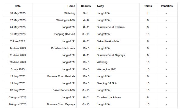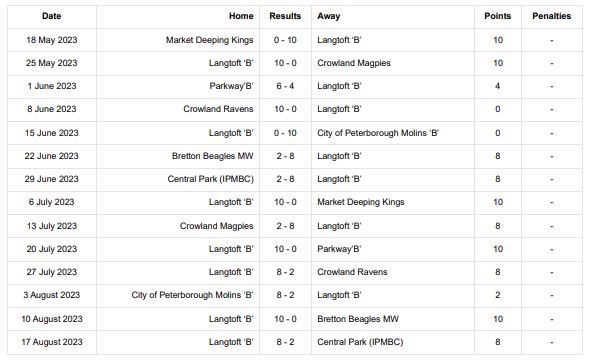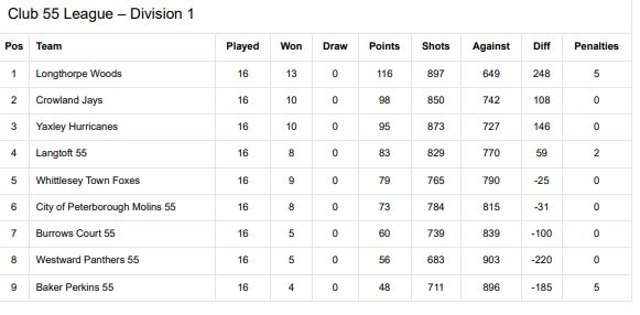 We spent most of the season in 2nd position, starting after our 3rd match when we won 8pts from a win and stayed in that position for the next nine matches. Unfortunately we were unable to maintain our good form and then lost our last four matches. This meant we lost our 2nd place and finished up in 4th position. One highlight that we did achieve was a 10-0 victory Away at Longthorpe Woods who finished as winner’s of our Division.