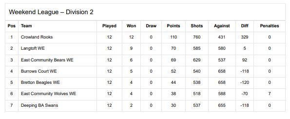 With Crowland Rooks running away with the league, we were in third place going into our last two games, three points behind second placed East Community Bears who had played a game more. All we needed to do was beat them by 7-3 or better to finish in front of them, we lost 8-2! This meant that we had to beat East Community Wolves 10-0 in the last game.