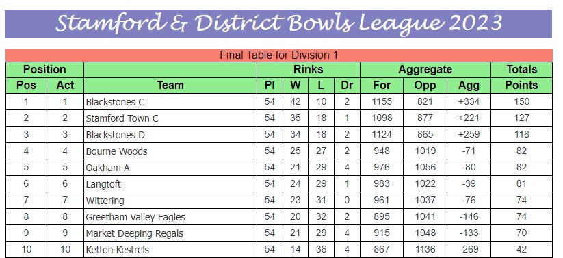 I would like to thank all those players who played in the Stamford League team for their help and co-operation during the season, particularly those who stepped in as last minute substitutes and those who acted as captain on the odd occasions I wasn’t around. Nolan Catterwell.